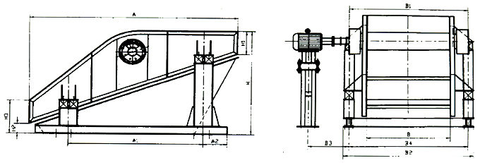 電動(dòng)機(jī)安裝在篩框的左側(cè),也可安裝在篩框的右側(cè),如果無(wú)特殊要求,制造廠按物料運(yùn)動(dòng)方向的右側(cè)安裝供貨。